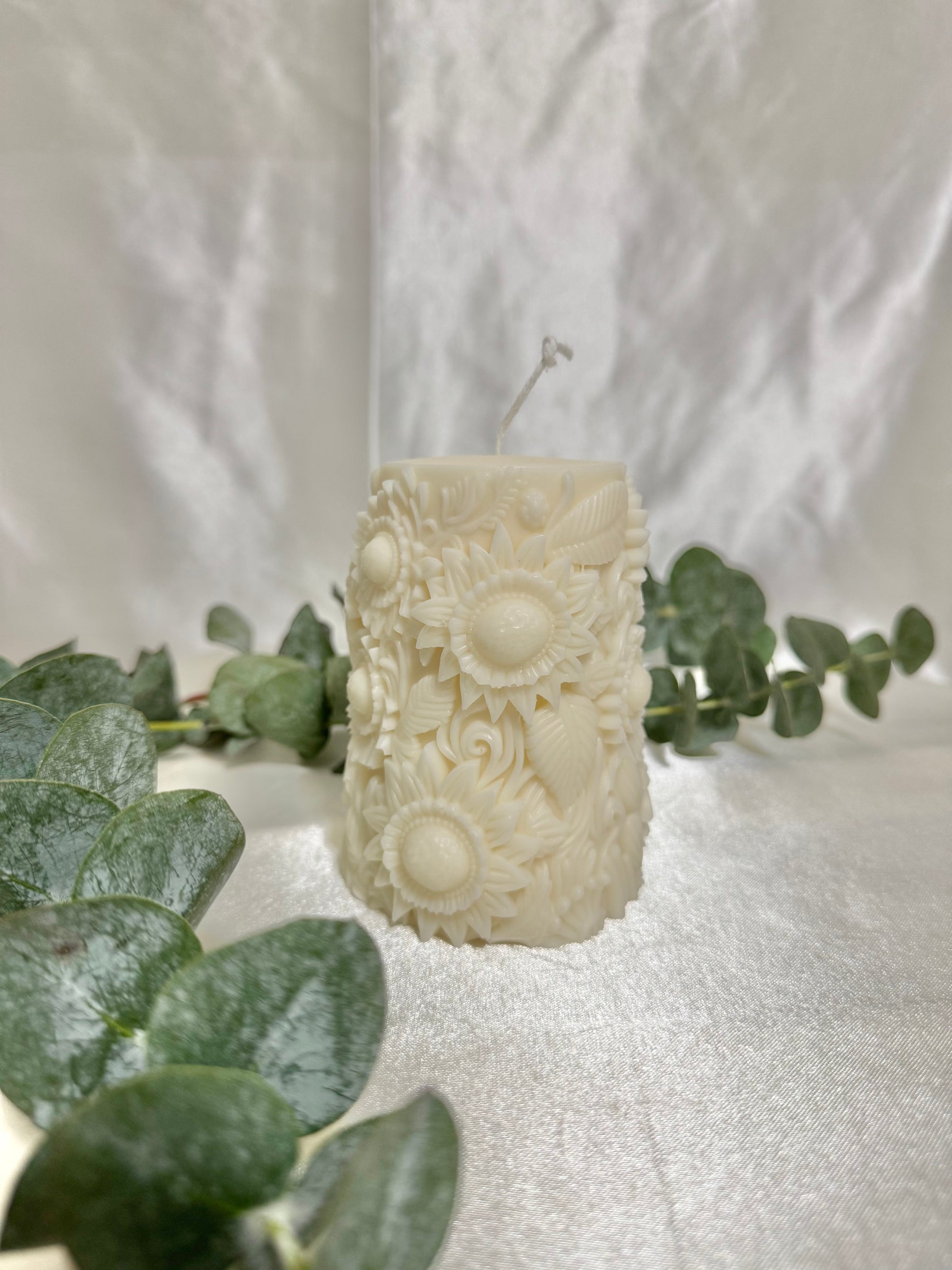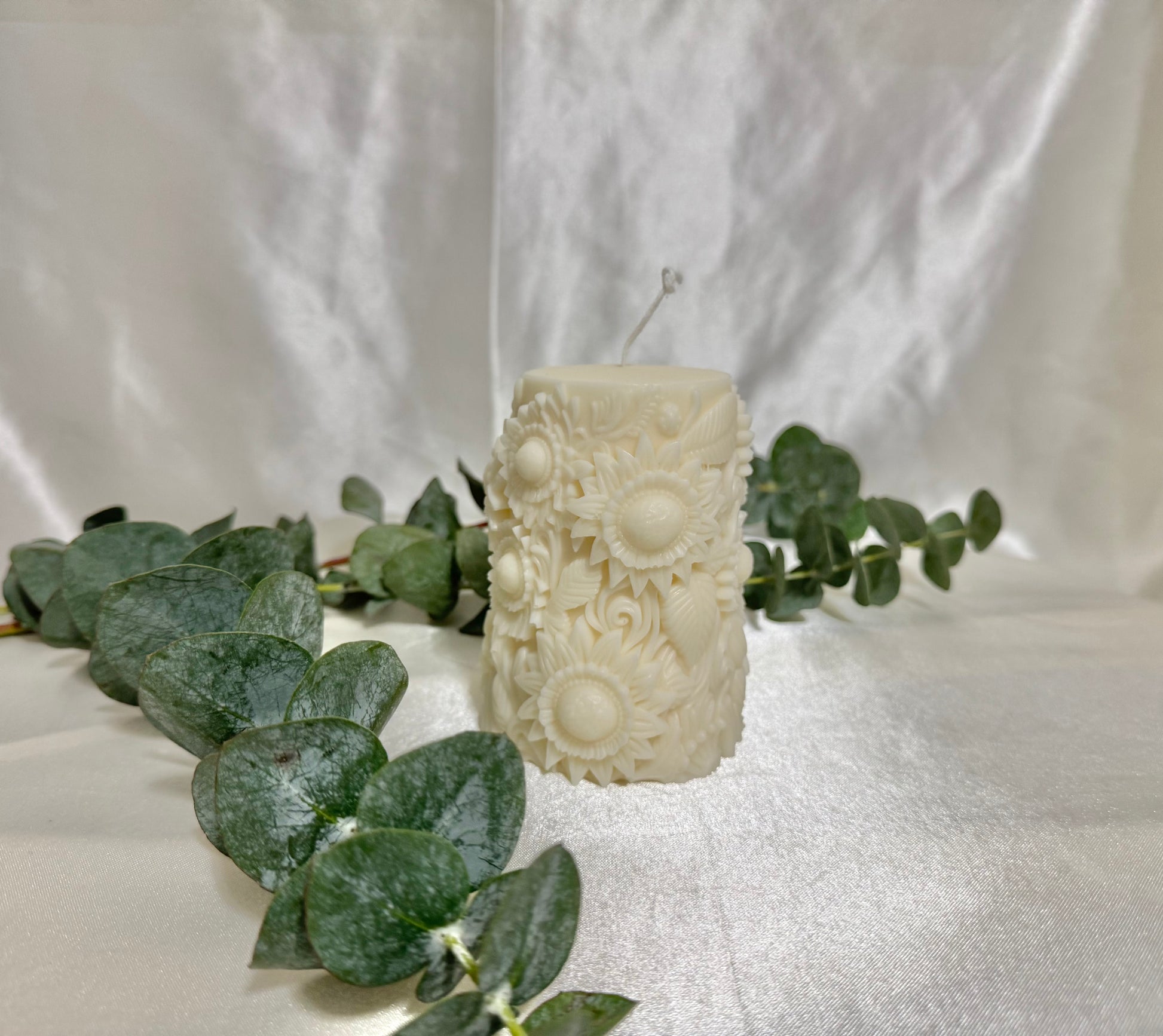 A candle that embodies nature’s elegance, adorned with intricate floral details that bring warmth and charm to any space. Crafted from 100% soy wax, this artisanal candle is designed to be both a statement piece and a source of cozy ambiance. Whether used as a decorative accent or enjoyed for its gentle glow adding a touch of nature-inspired luxury to your home.